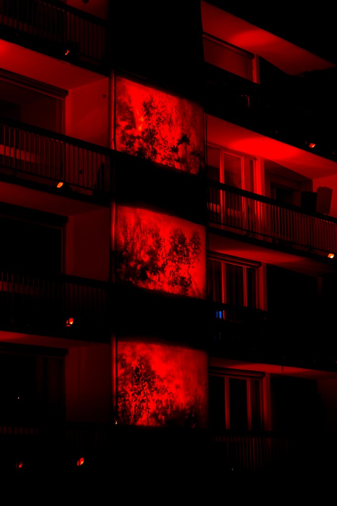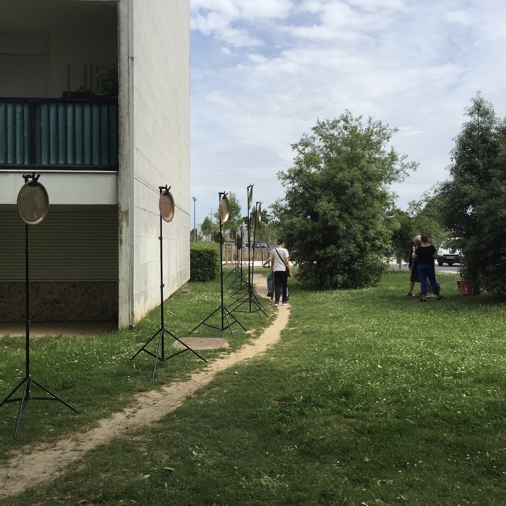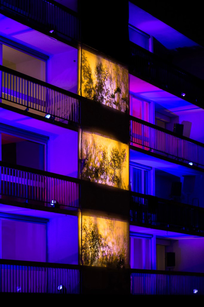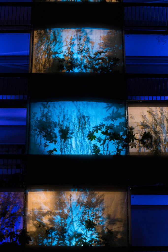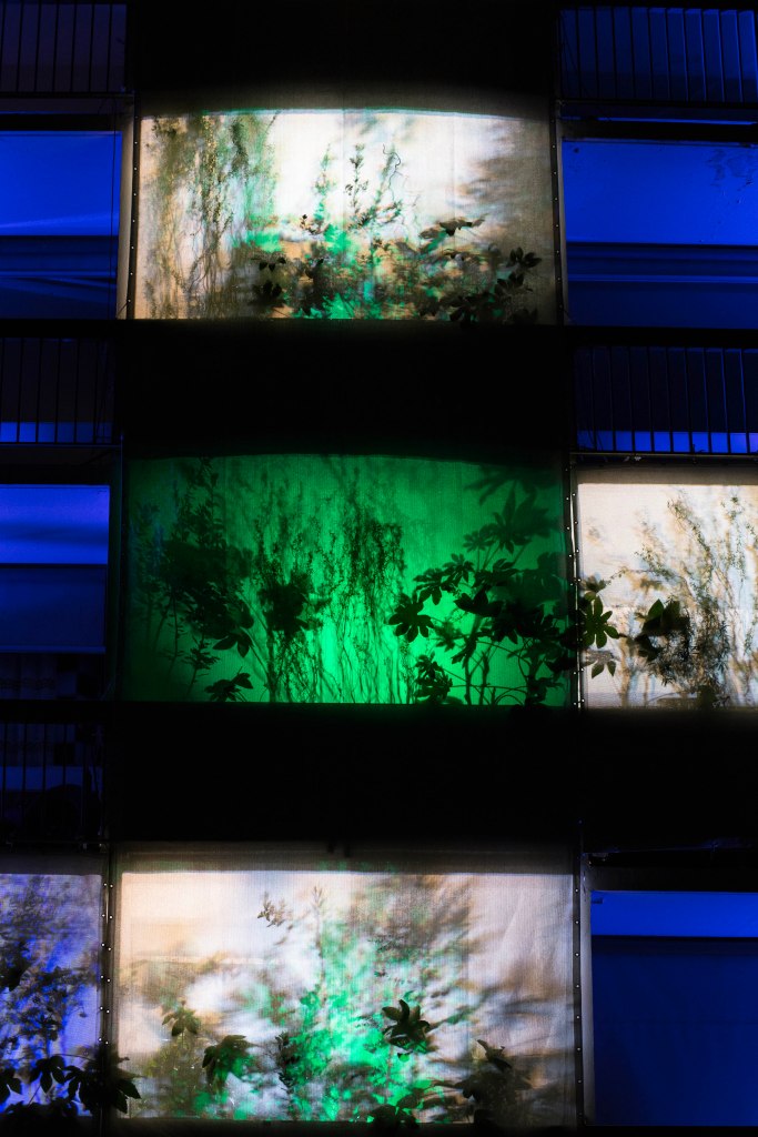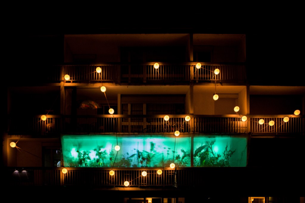 Nous avons proposé à quatre artistes, une créatrice sonore Aline Chambras, un créateur lumièreEric Blosse, une photographe Claire Lafargue ainsi qu’à un architecte paysagiste Samuel Enjolras, et à un collectif d’habitants du quartier, de répondre à ces questions. Le point de départ pour la création de l’installation j’habite ici et je vous vois de ma fenêtre…