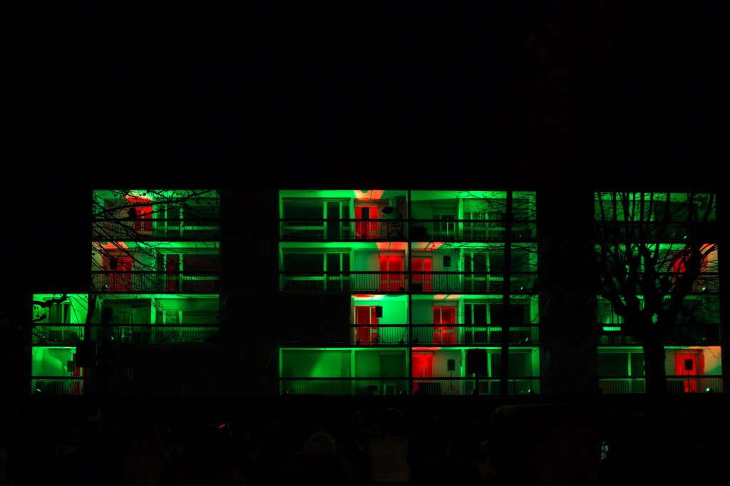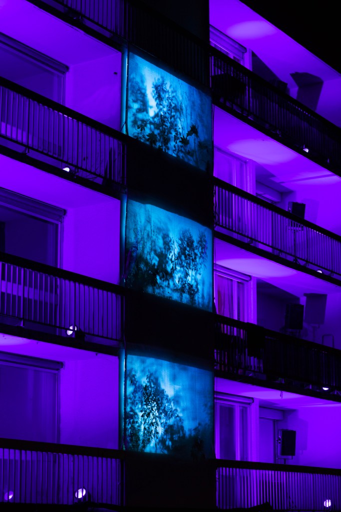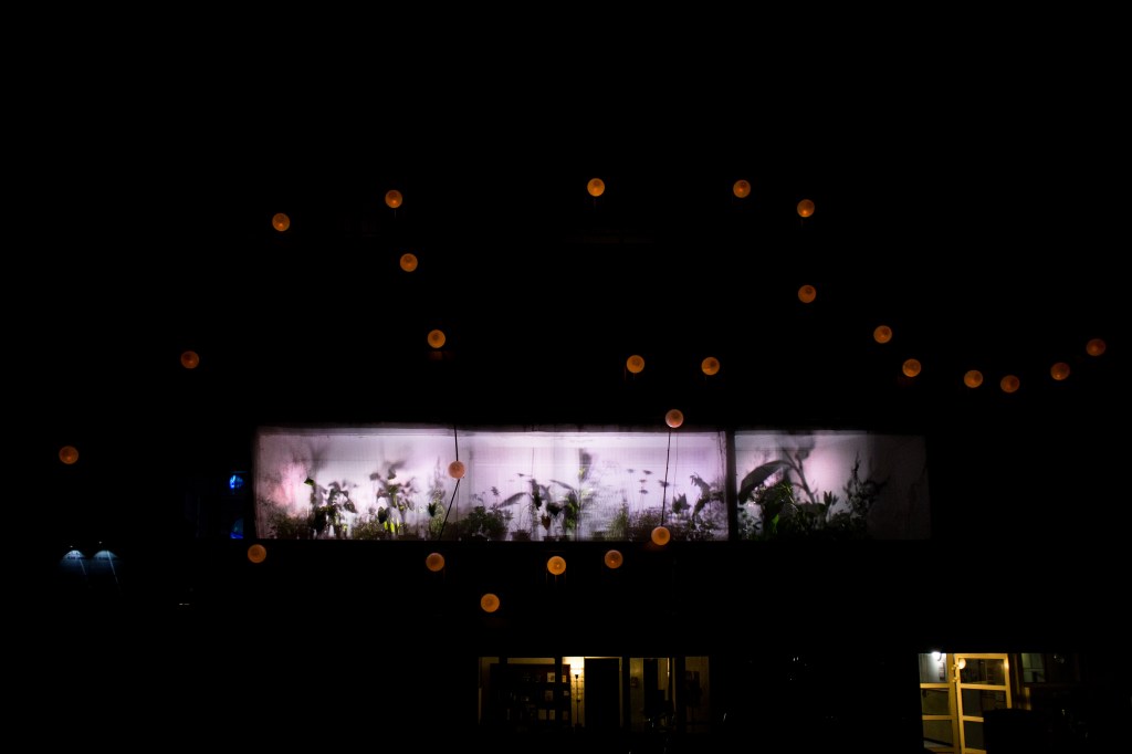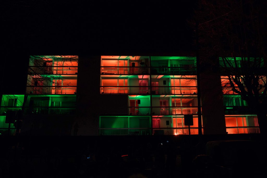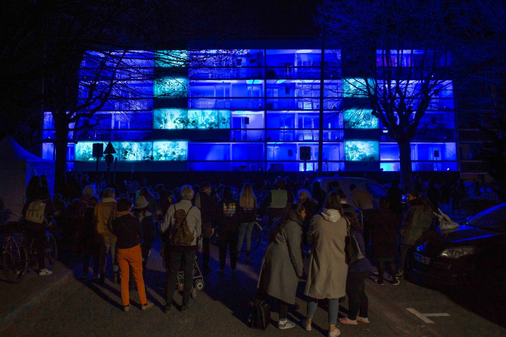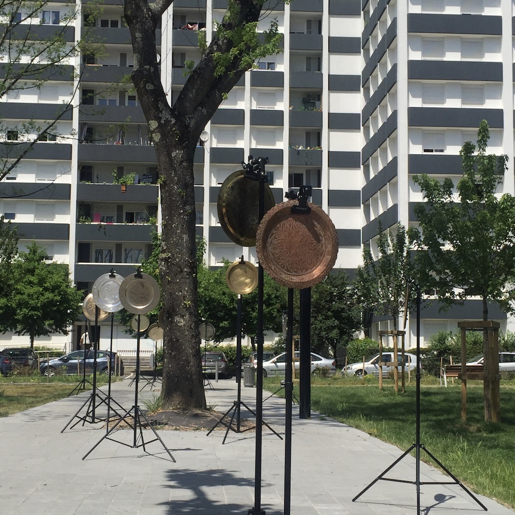 Nous avons proposé à quatre artistes, une créatrice sonore Aline Chambras, un créateur lumièreEric Blosse, une photographe Claire Lafargue ainsi qu’à un architecte paysagiste Samuel Enjolras, et à un collectif d’habitants du quartier, de répondre à ces questions. Le point de départ pour la création de l’installation j’habite ici et je vous vois de ma fenêtre…