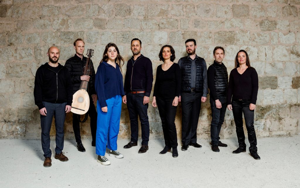 Un instrumentiste qui joue autant le théorbe que la guitare baroque et le colascione (équivalent de la guitare basse à la Renaissance) ainsi que différentes percussions se joint aux chanteurs qui auront ici un micro et de petits instruments avec lesquels ils devront composer, comme par analogie avec la situation environnementale qui nous contraint à modifier et à questionner notre manière d’être au monde.
