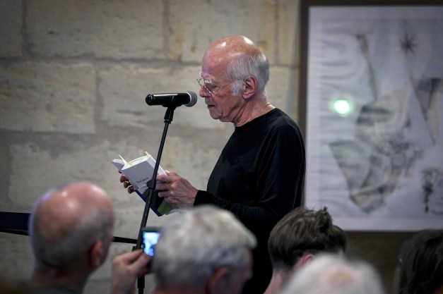 Sur le plateau de part et d’autre d’une table oblongue, dans l’espace et la lumière d’Éric Blosse, les deux acteurs, leurs deux voix, leurs deux corps. Projetées sur un support qui aurait – dans ses proportions – les dimensions du Détail/Opalka, des images en mouvement réalisées par Olivier Crouzel. Etienne Martinez organise un espace microphonique et sonore en écho à l’atelier du peintre.
