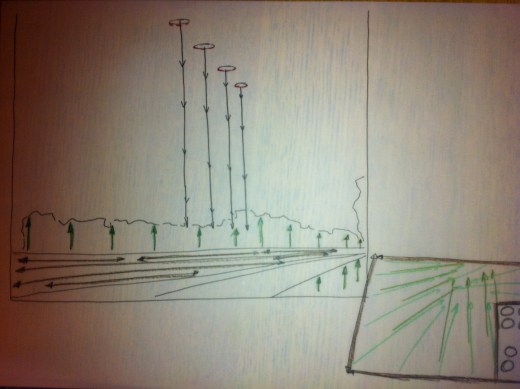 A l’aide des 30 années la rencontre s’effectuera entre les lumières ballons et le matelas végétal, entre ce qui descend et ce qui monte, entre ce qui se construit à l’intérieur et ce qui gagne de l’extérieur.Les mouvements coordonnés de la végétation, de la faune, des hommes venus chaque année ramener graduellement au sol les lumières ballons, des aventureux ayant percé la limite ici et là, façonnent les espaces.